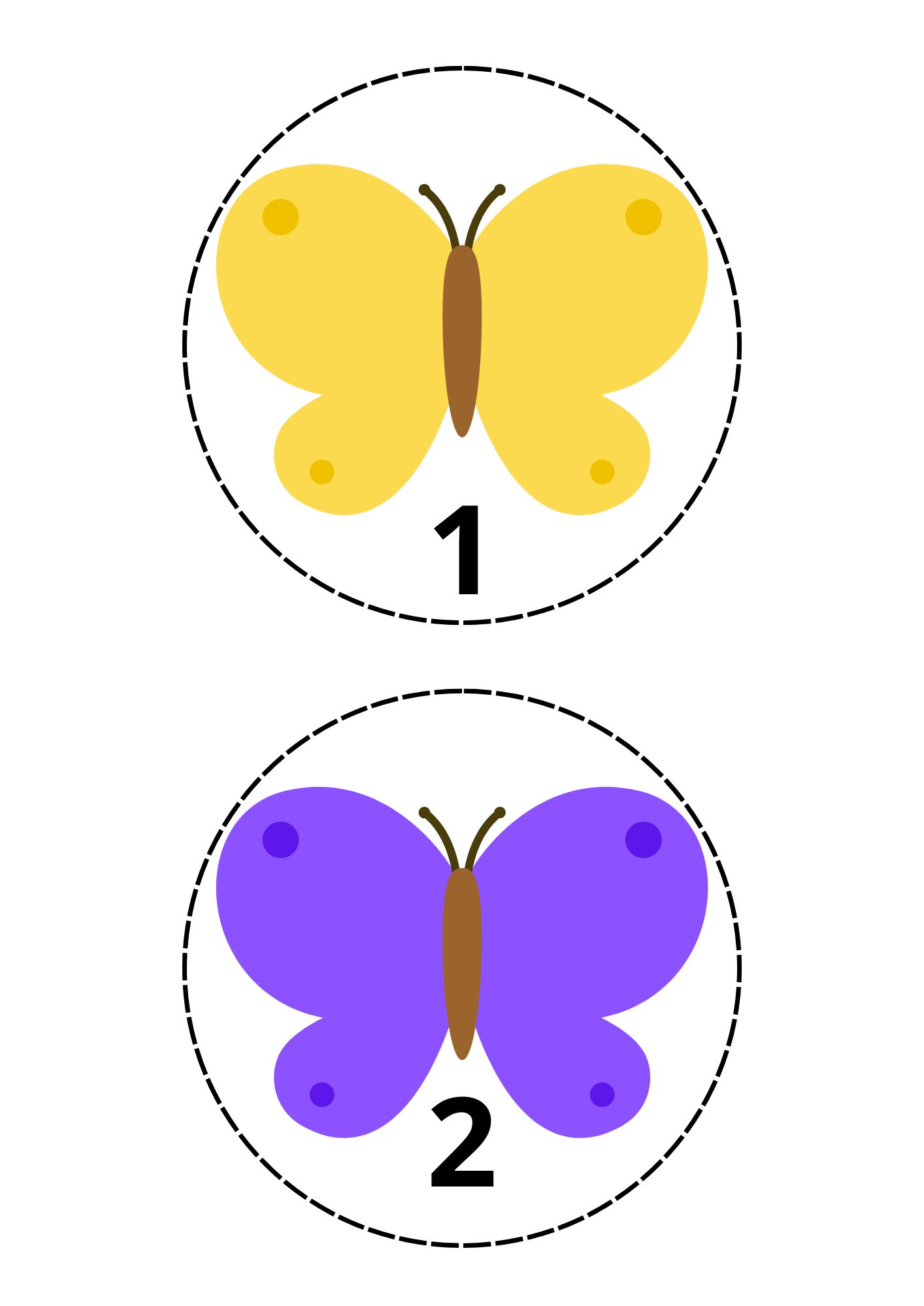 Komplekti kuuluvad kaardid numbritega 0-15. Igal A4 lehel on kaks liblikate kaarti. Kaardid on mõeldud kahepoolseks printimiseks. Selle tulemusena on ühel poolel liblikas numbriga ja teisel poolel on liblikad loendamiseks. Loendamist saab hästi toetada ka pesulõksude abil, mida saab kinnitada kaardi küljele.