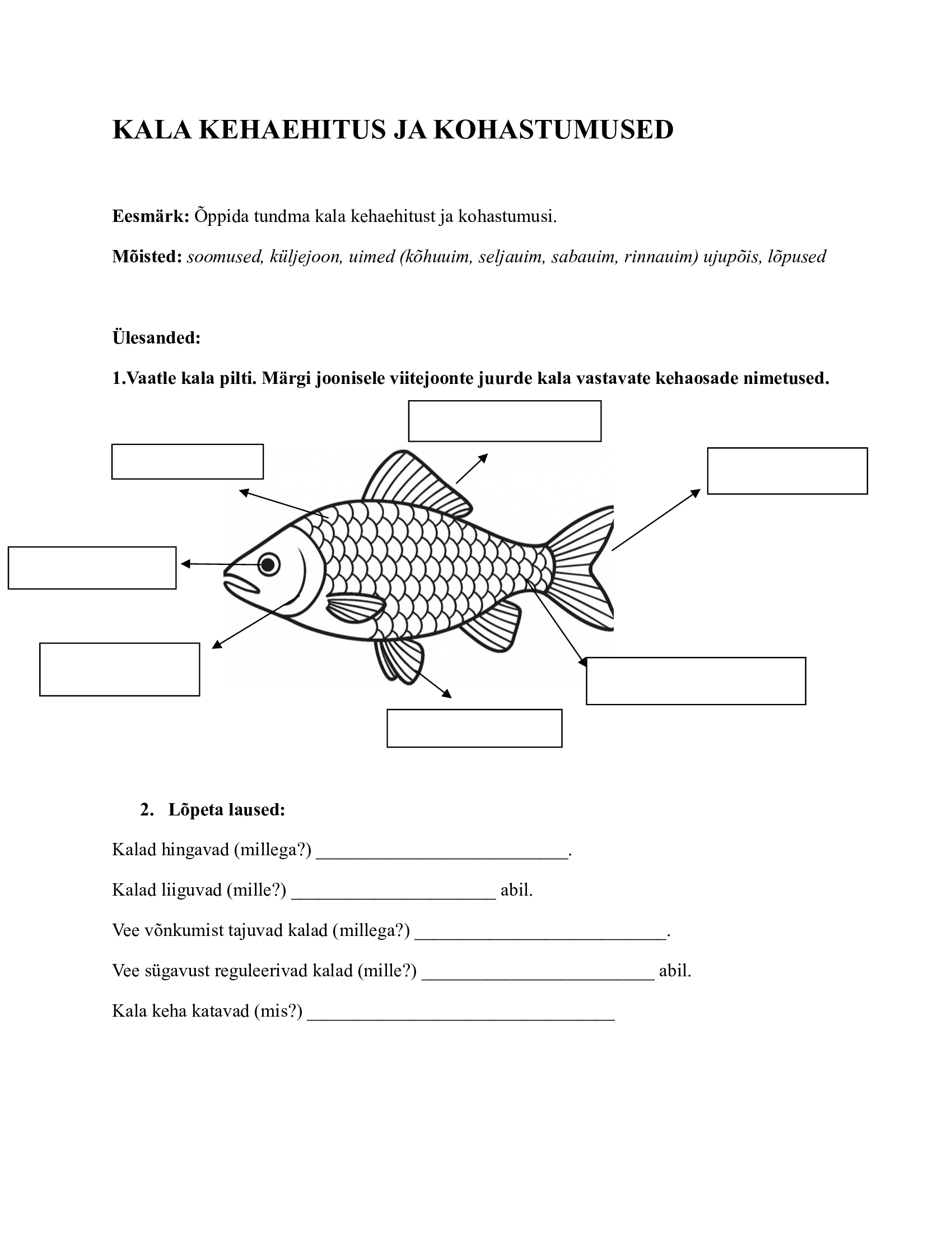Õppida tundma kala kehaehitust ja kohastumusi.
