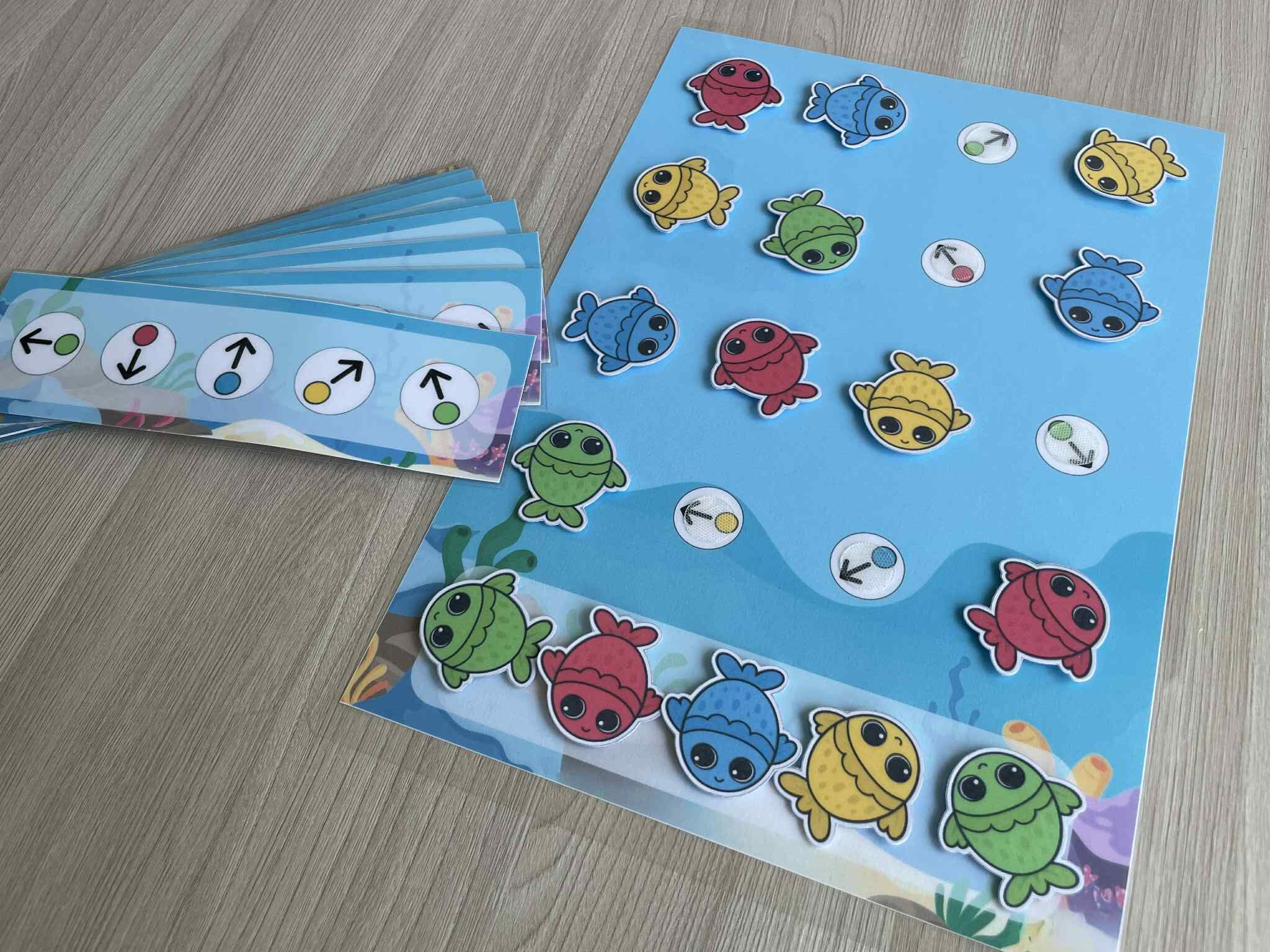 Laps valib kaardikese, kus on värvilised kalad ja noolega tähistatud nende liikumissuund. Tema ülesandeks on leida mängualalt just see kala, kes vastab antud värvile ning asetada õiges suunas õigele kohale mängu allosas. Kokku on 20 erinevat suunakaarti.