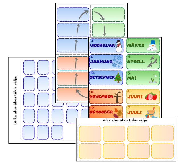 Kuna kõik alused saab printida eraldi lehele, saab õpetaja ise valida, kuidas materjal seinale/tavhlile paigutada.