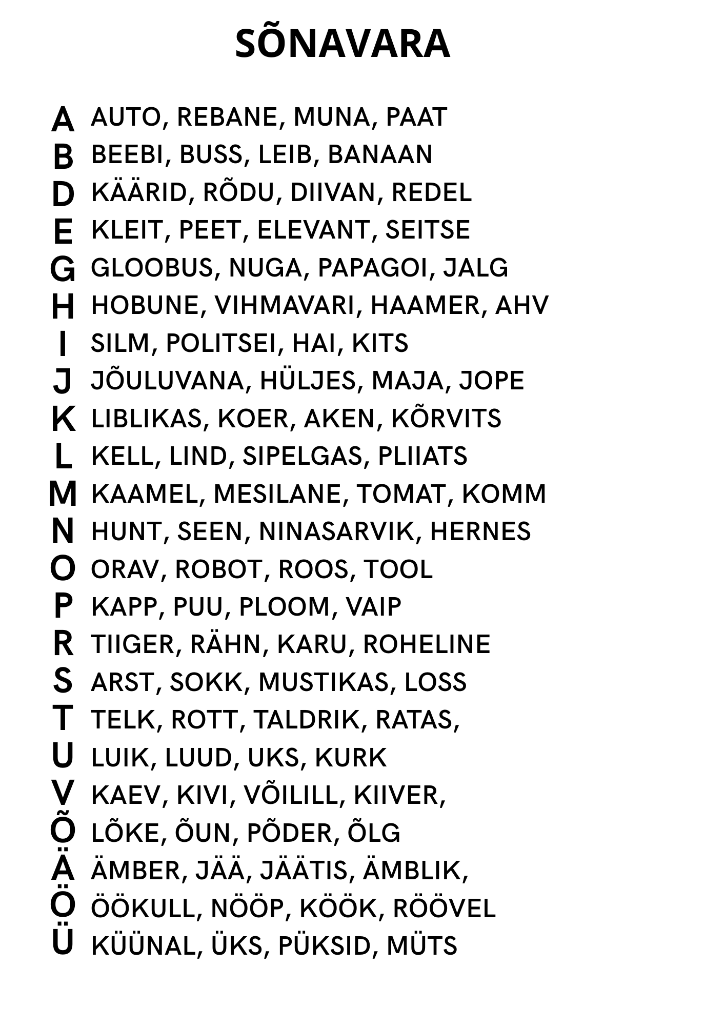 Failis on olemas 23 häälikut ja igale häälikule on 4 pilti, mida hääliku peale sobitada. Lisalehena on sõnavara, ehk siis toon välja, millised pildid olen mõelnud iga hääliku juurde. Seda kasuta siis, kui kasutad kõiki häälikute aluseid korraga.