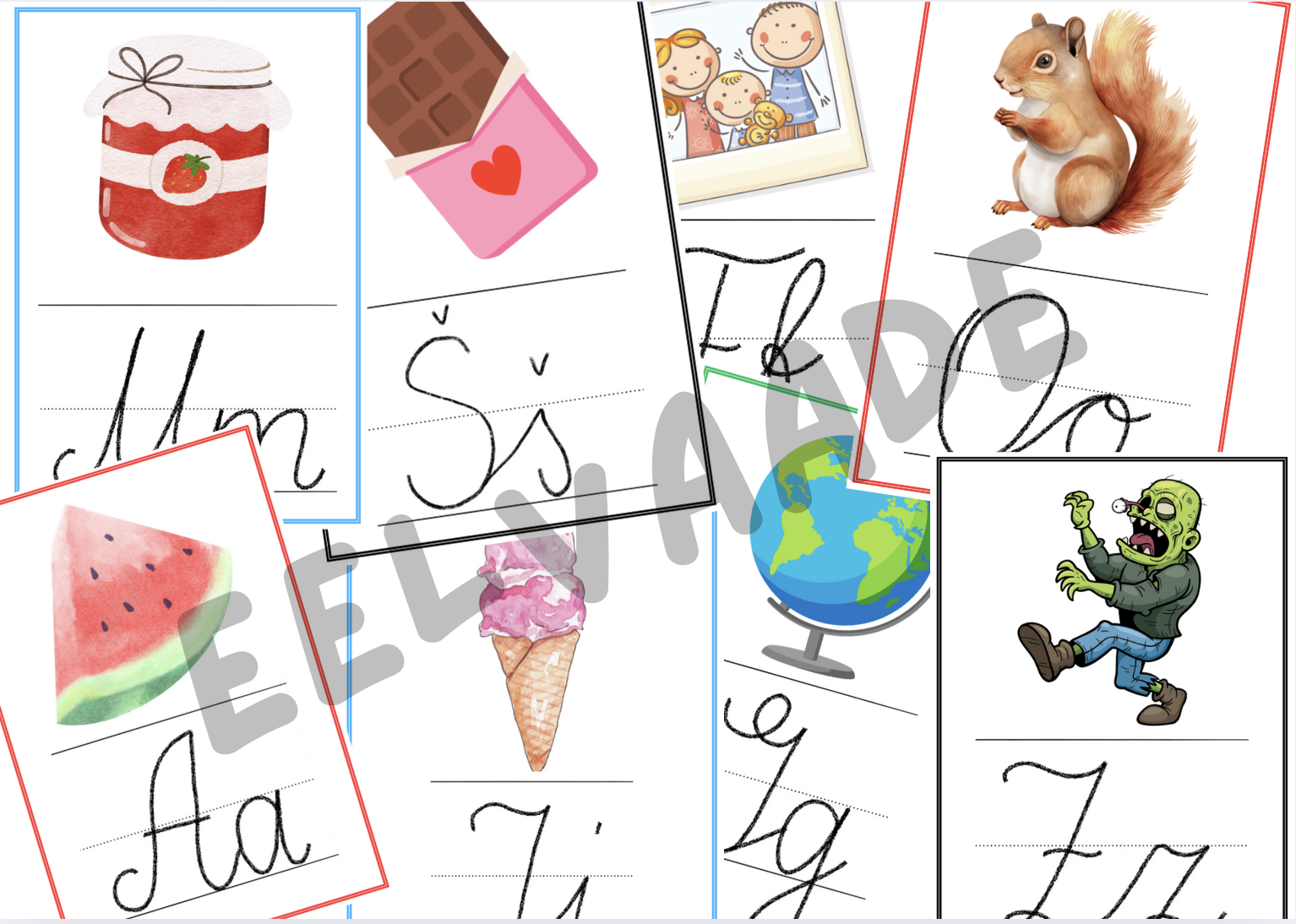 Võõrtähestik. Tähed Q, W, X ja Y on ilma pildita. A4 peal 2 tähte.