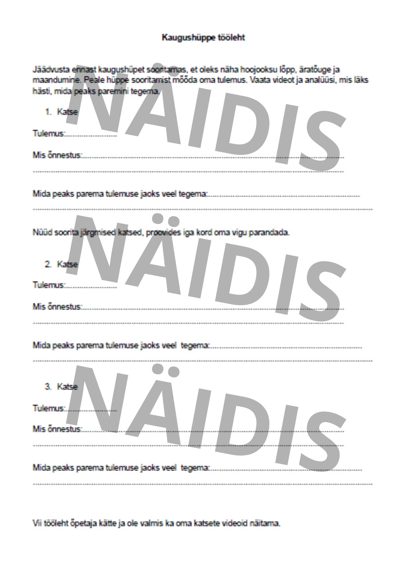 Kaugushüppe tööleht