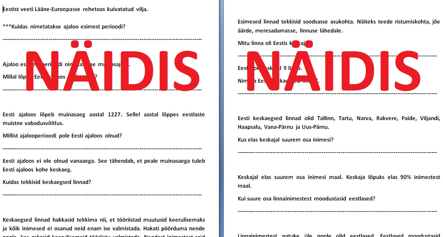 - Töölehte (täida lüngad, väitlaused, järjesta, järjestamine, avatud küsimus) saab kasutada teema õppimisel, kordamisel või hindamisel. Õpetajale vastused.