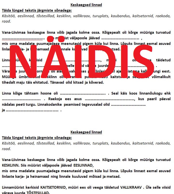 - Keskaegsed linnade lünktekst (koos vastustega).