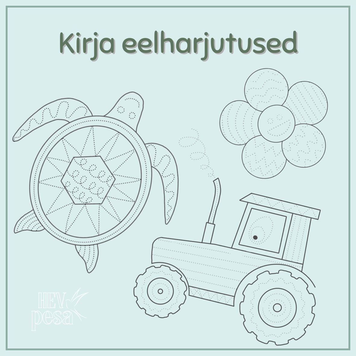 Kirja eelharjutused peenmotoorika arendamiseks.