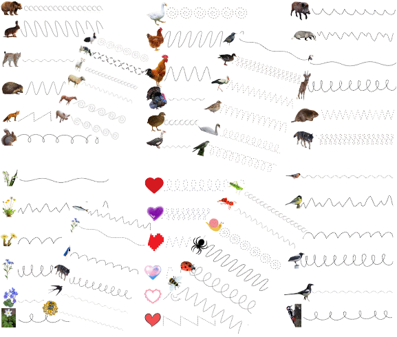 Pildid loomadest, lindudest, taimedest ja südametest muudavad harjutamise huvitavaks ning hoiavad lapse motivatsiooni kõrgel.