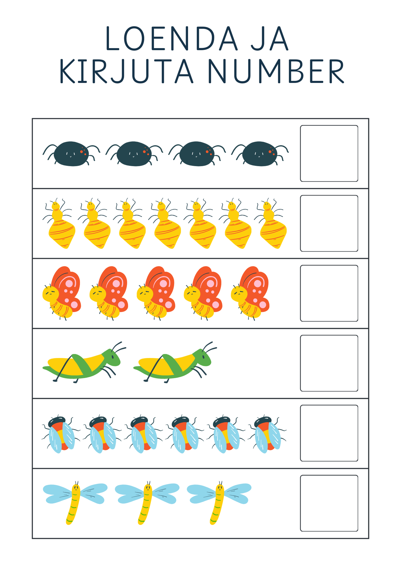 Kirja eelharjutused, loendamine (7 lk) kogus