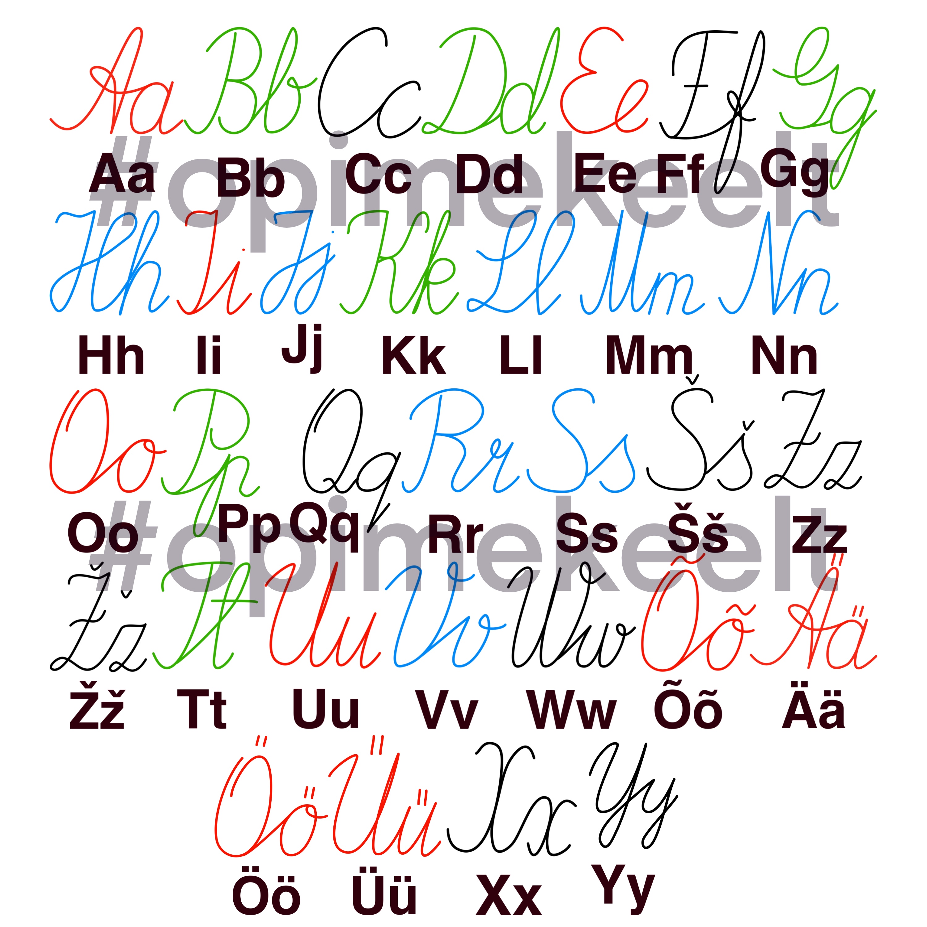 32 lehekülge tähti. Igal lehel üks kirjatäht ja trükitäht. PDF