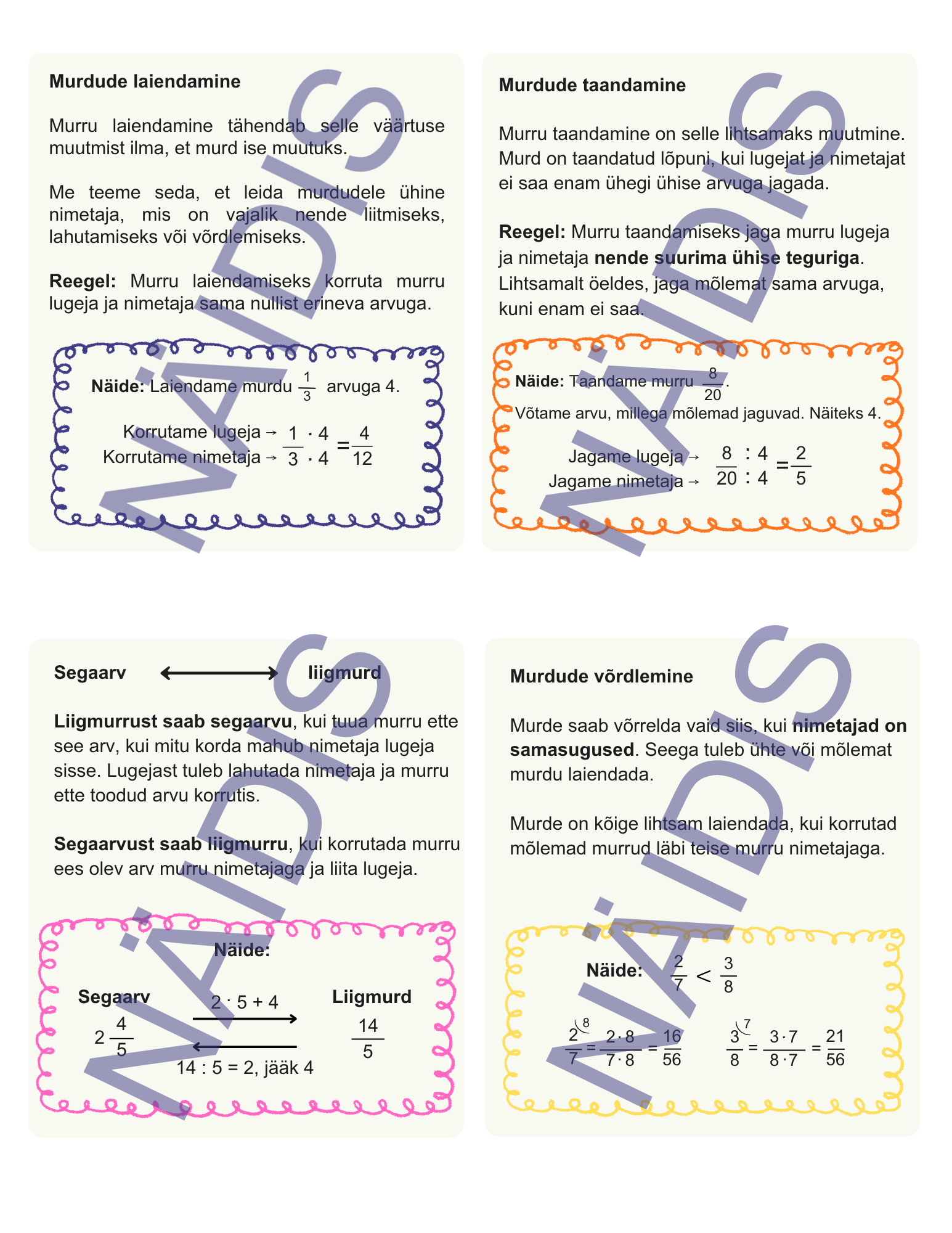 Tehted harilike murdudega: 10 erineva alateema spikrid koos seletuse ja näidisega.