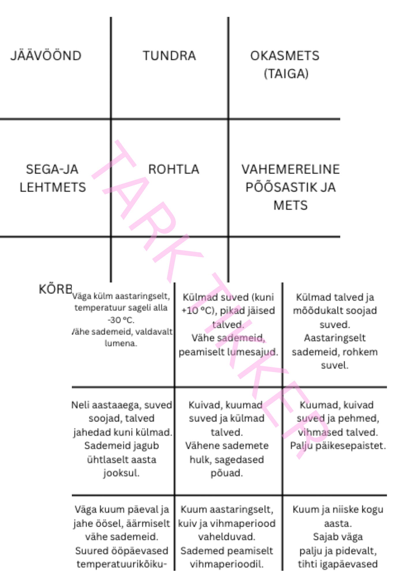 Õpilased loevad kaartidelt kliima kohta infot ja otsustavad, millises vööndis selline kliima on. Asetavad kaardi vööndi nimetuse peale.