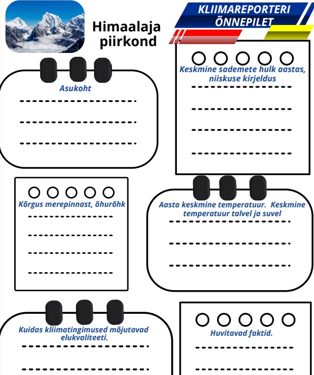 uurida erinevate piirkondade kliimat üle maailma (Sahara, Alaska, Filipiinid, Lõuna-Euroopa jpt);