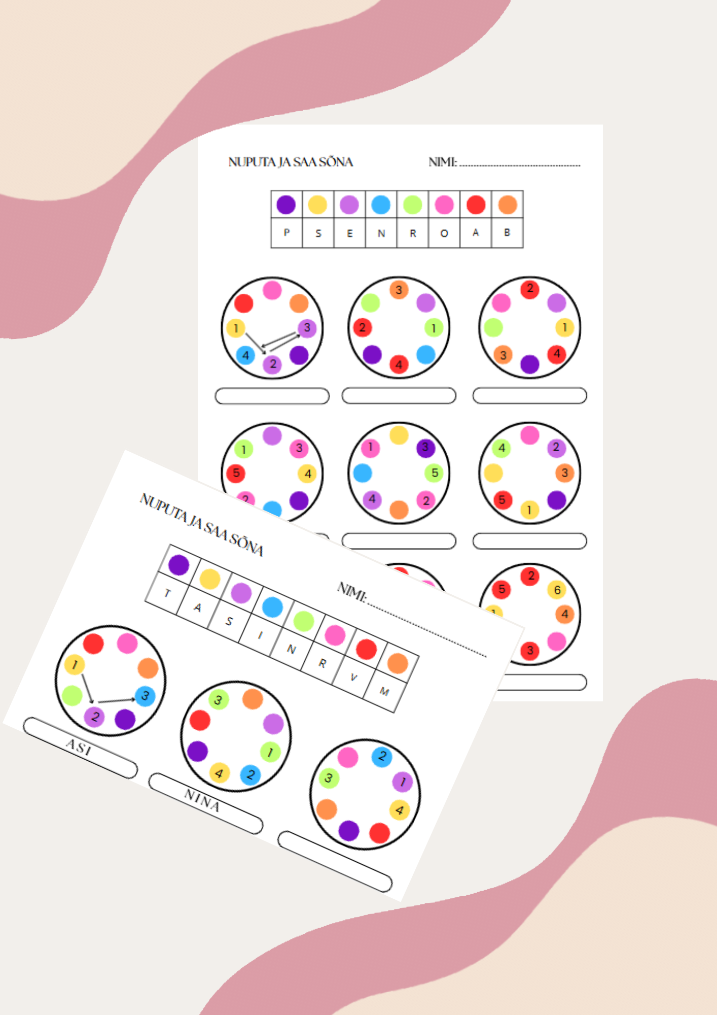 Nuputa, kodeeri tähed ja saa sõna. Kirjuta ja loe sõna.