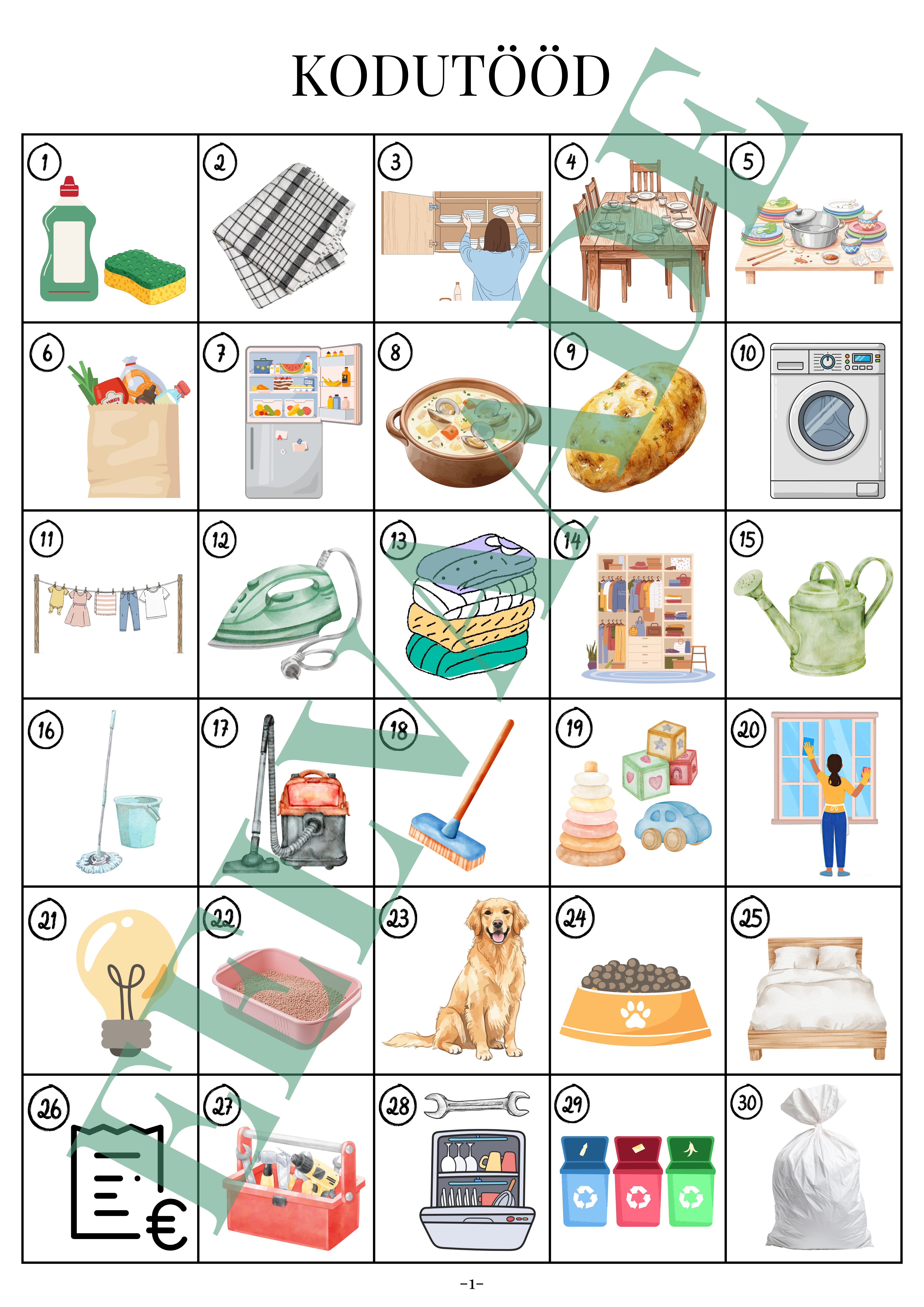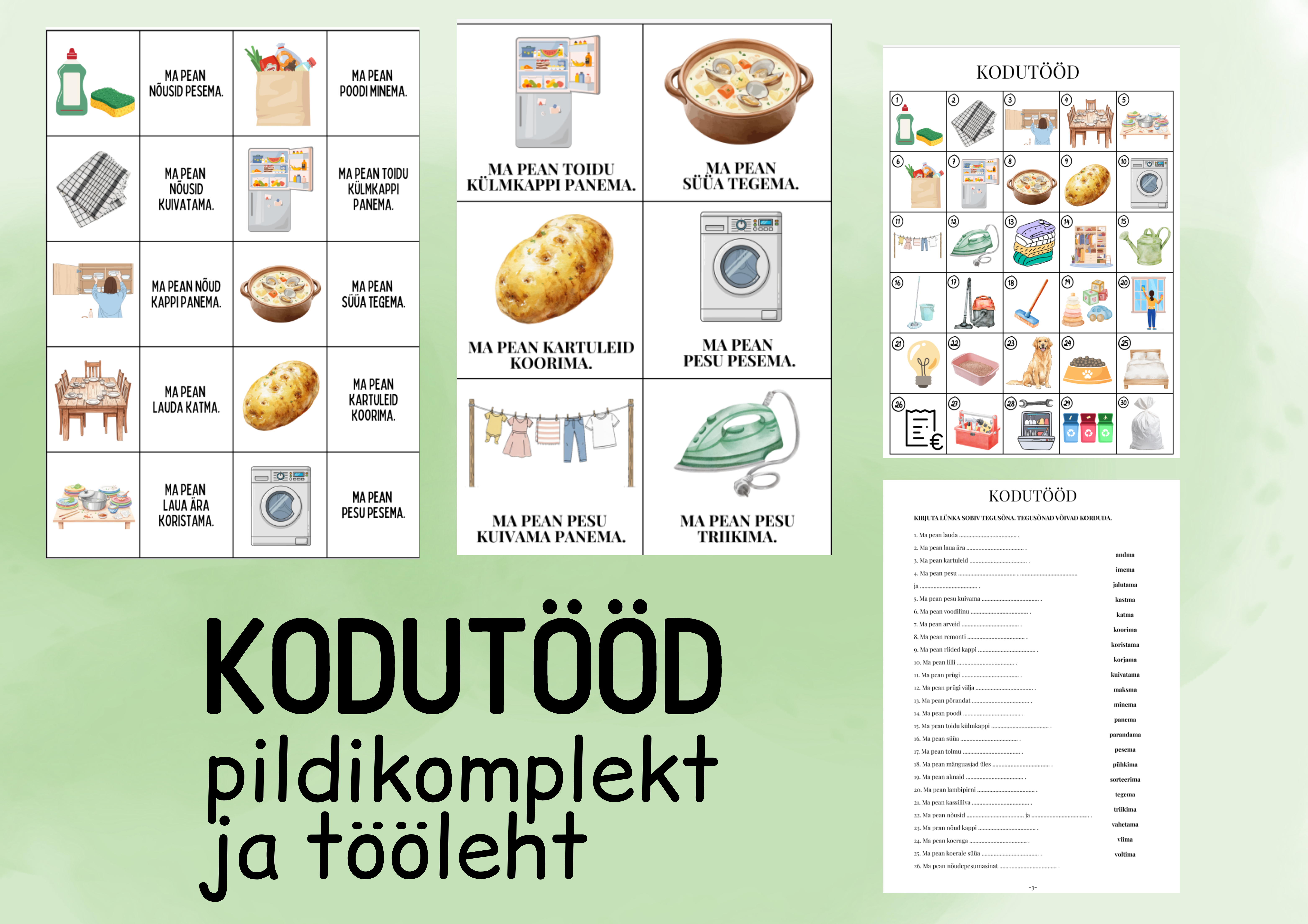 “KODUTÖÖD – pildikaartide komplekt ja tööleht”