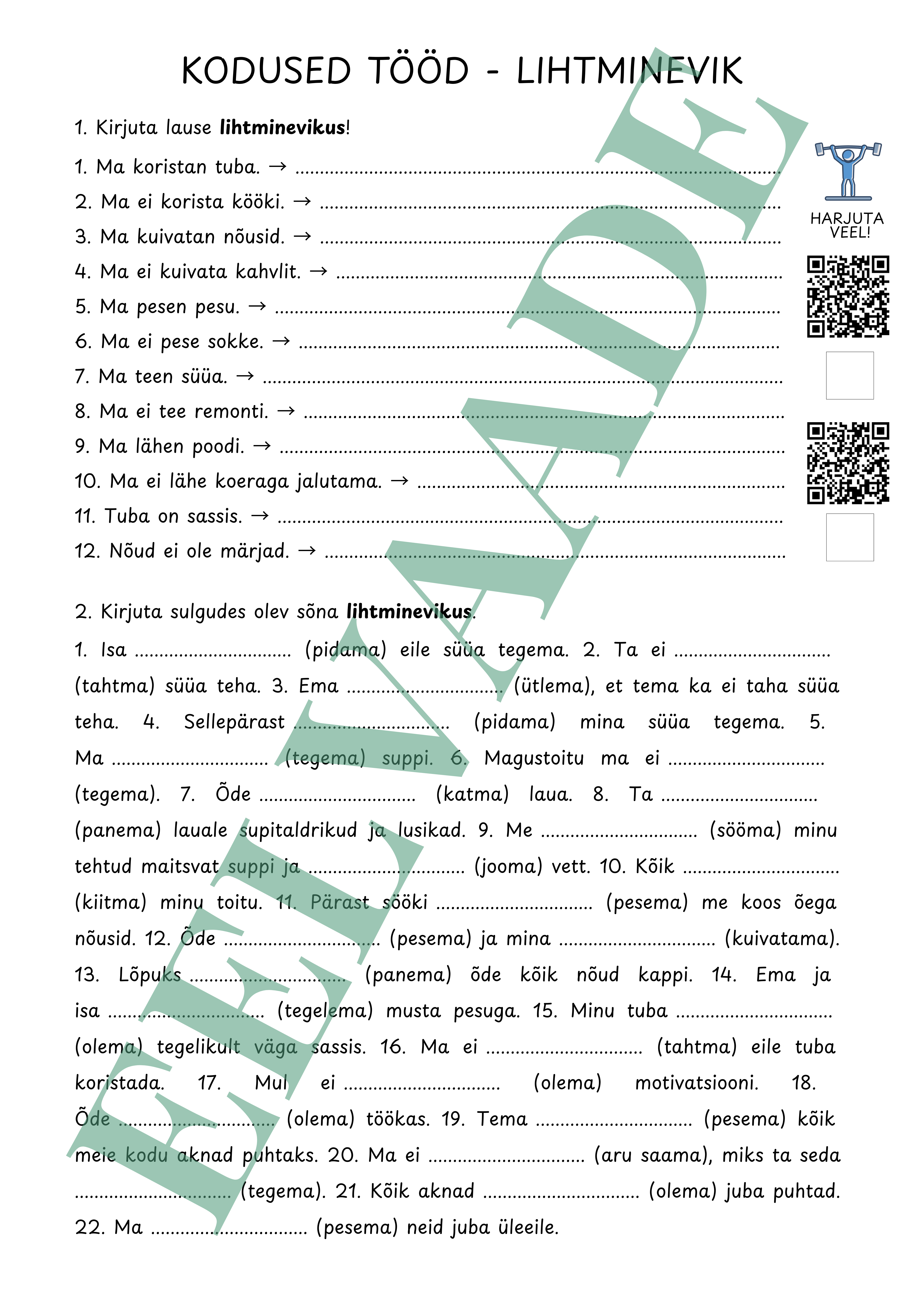 – Lahendada veebiülesandeid ma- ja da-infinitiivi ja lihtmineviku kohta.