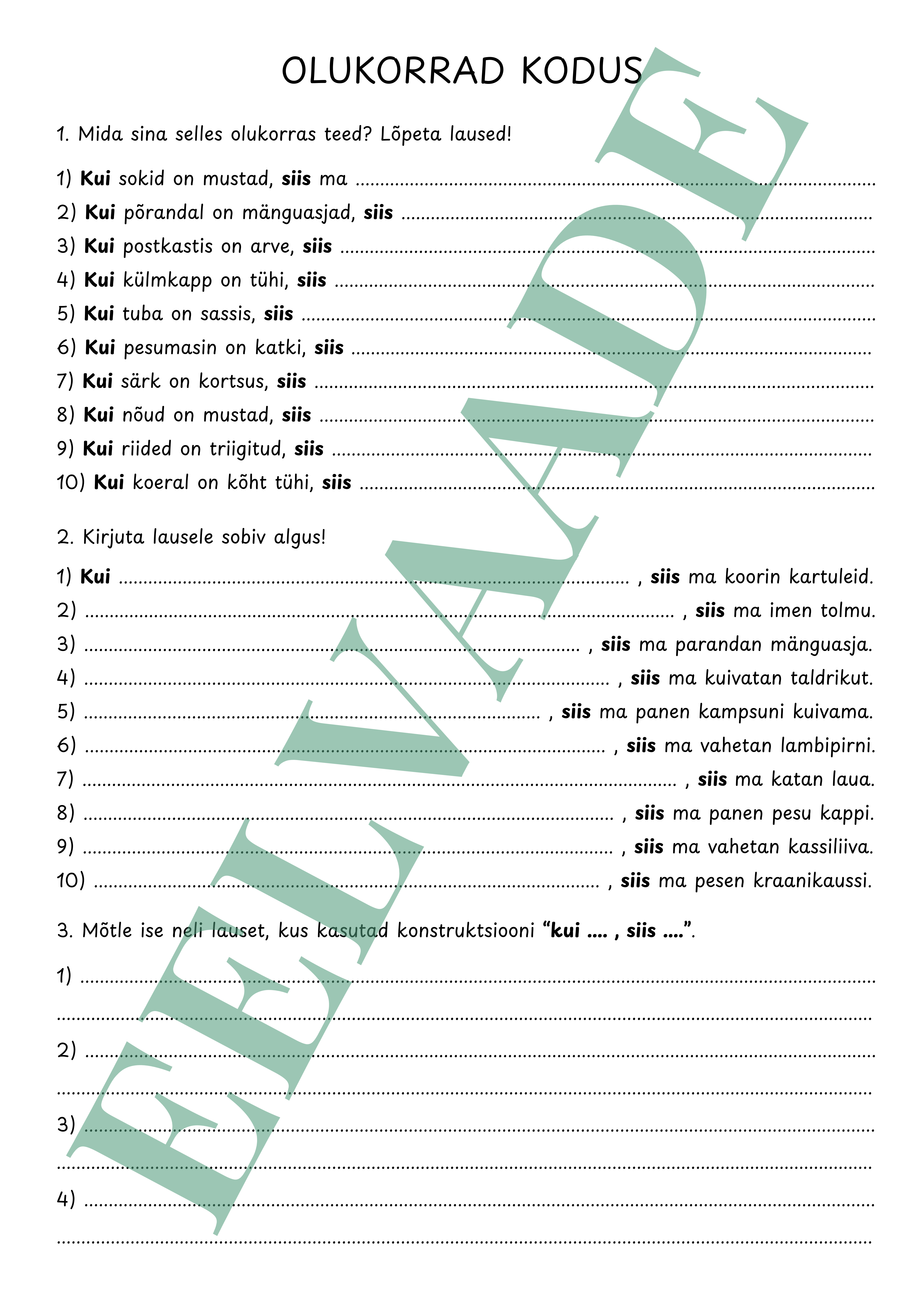 – Harjutada konstruktsiooni “kui … , siis ….”