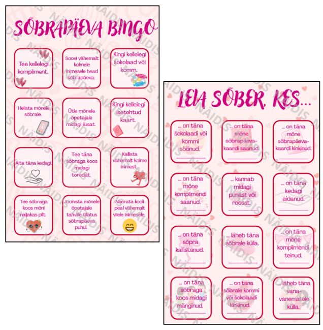 Komplekt: sõbrapäeva BINGO+ Leia sõber, kes… .