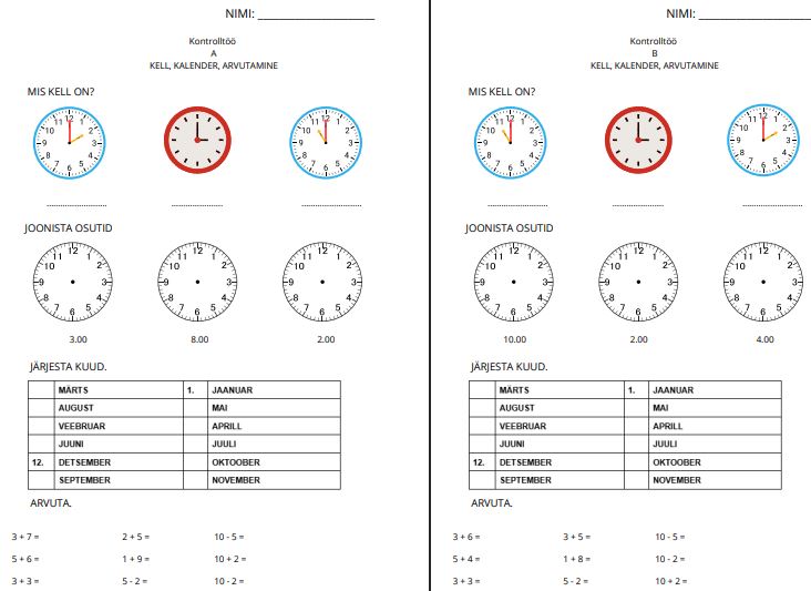 Kontrolltöö kell, kuude nimetuste järjestamine ja arvutamine
