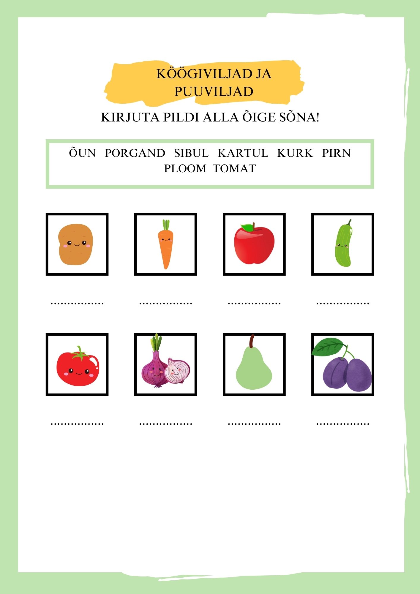 Lühike tunnikontroll teemal “Köögiviljad ja puuviljad”