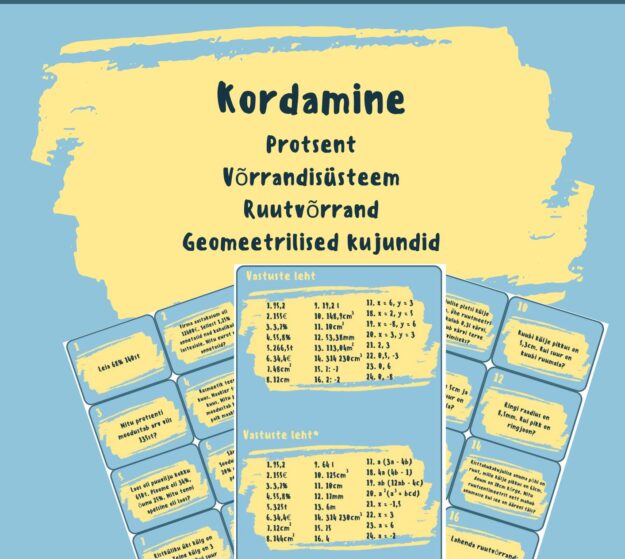 *LIIKUMISPAUSINA Kirjuta kaartide taha vastuste lehelt vastused. Õpilased liiguvad klassis ringi, leiavad paarilise ning näitavad neile ülesannet. Õpilased lahendavad üksteise kaartidel olevad ülesanded, kontrollivad tagant vastuseid ning vahetavad kaardid.
