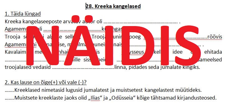 28. peatükk Avita 6. kl ajalooõpikus Kreeka kangelased (õ lk 18-21). Komplektis on tööleht ja märksõnad.