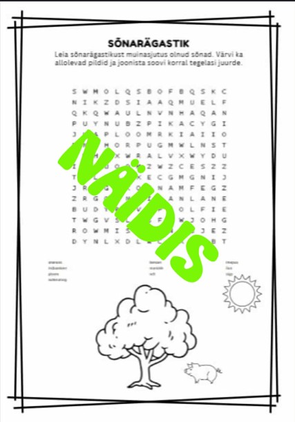 Materjal koosneb kahest lehest, mõlemad printerisõbralikud.