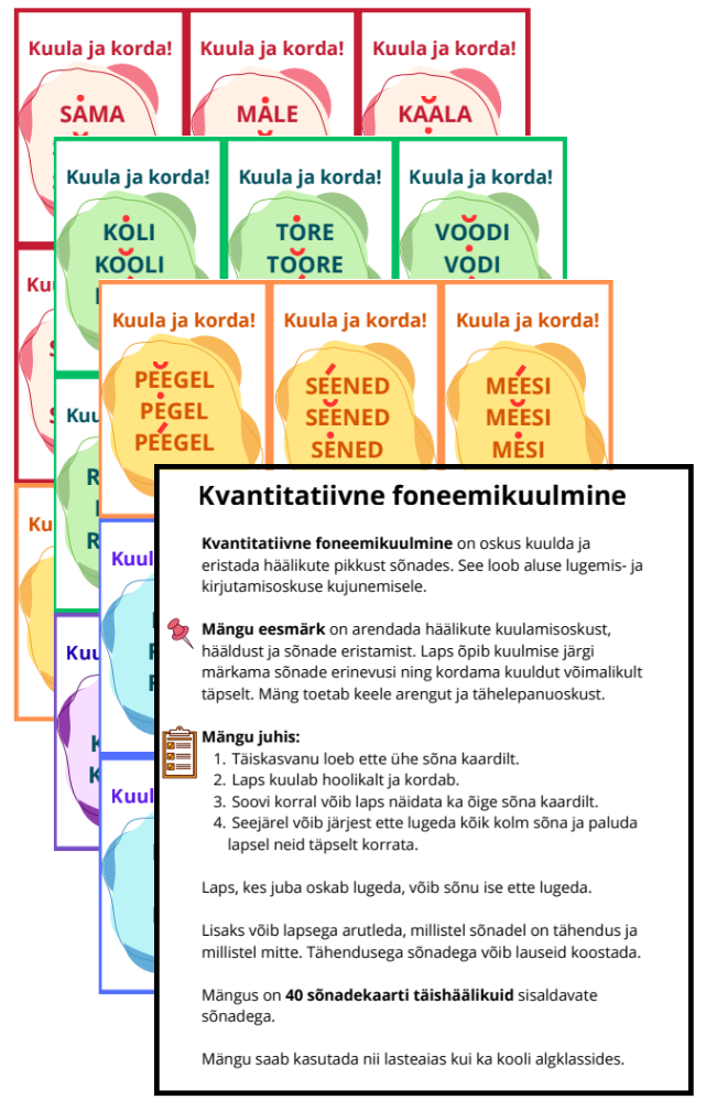 - Täiskasvanu loeb ette ühe sõna kaardilt.