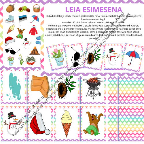 Alusel on 40 pilti. Sama palju on samad piltidega ka kaarte.