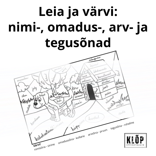 Leia ja värvi: nimisõnad, omadussõnad, arvsõnad ja tegusõnad