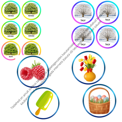 Kõrvale pannakse väikesed aastaaegade kaardid ja spinner.