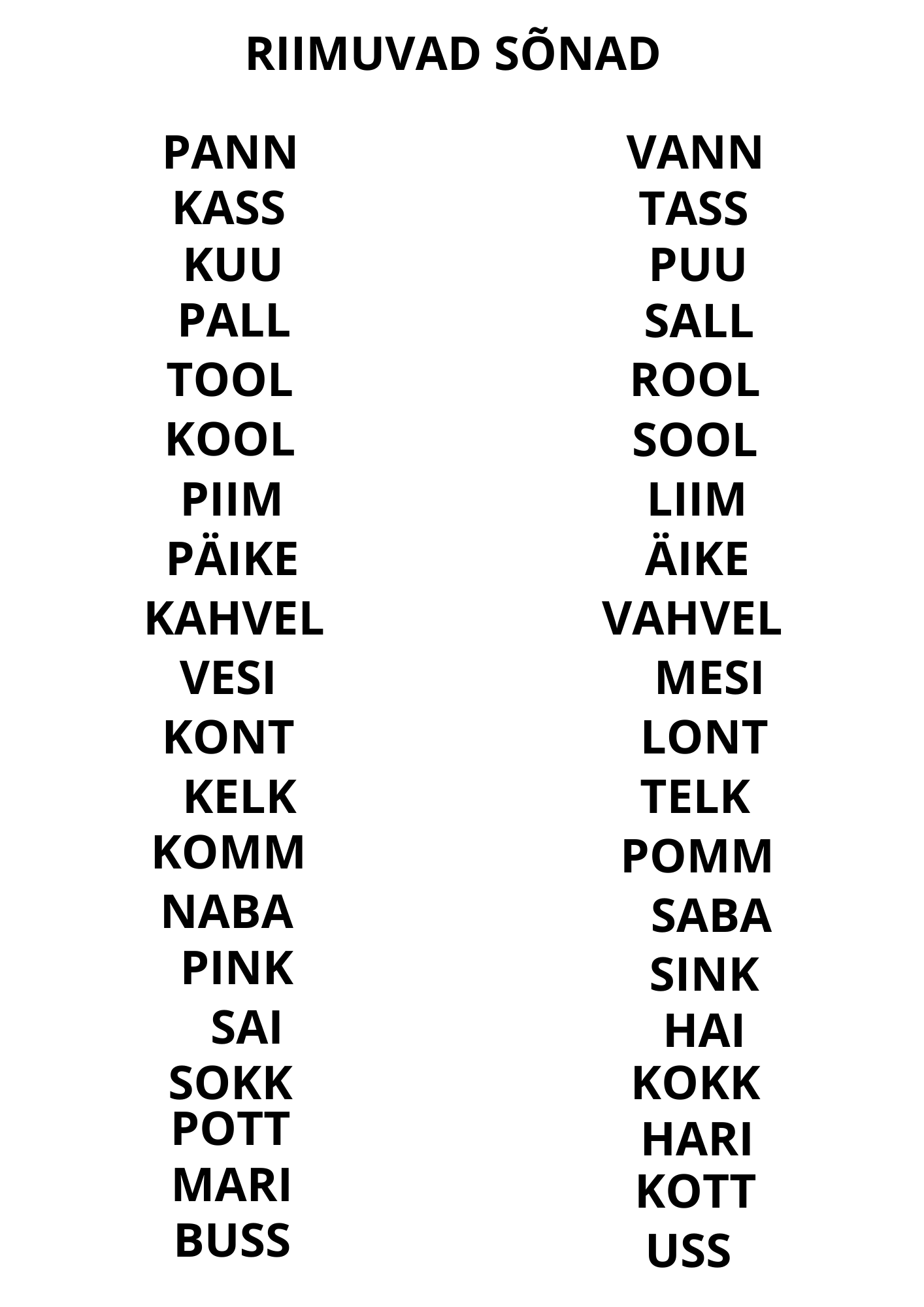 SARNASED EHK RIIMUVAD SÕNAD. PAARE KOKKU 20.
