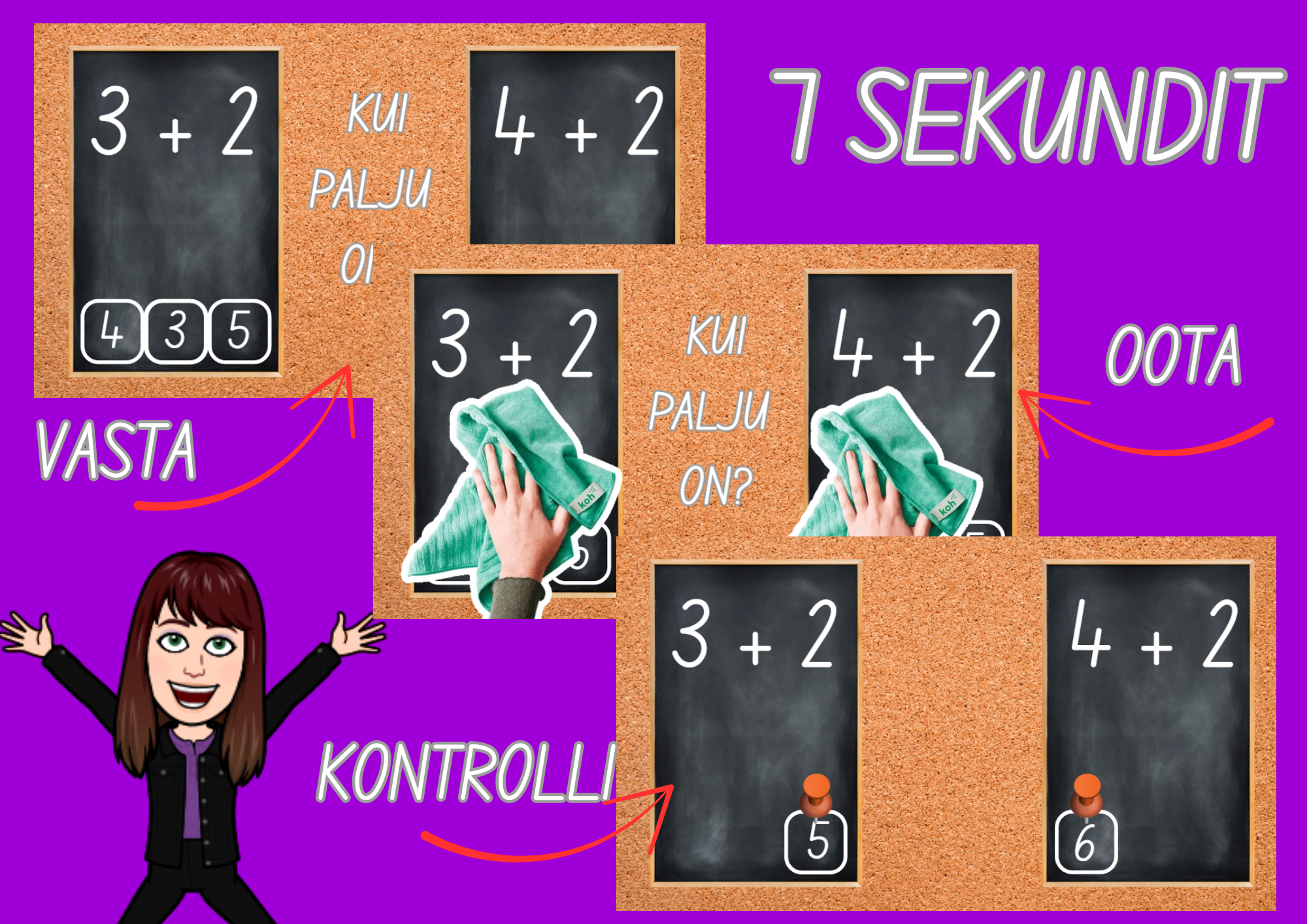- Mängu mängimiseks tuleb klassi jagada kahte kolonni. Vastata saab kolonni esimene liige. Vastaja peab hoidma kätt ekraanil õige vastuse peal nii kaua kuni virtuaalne õpetaja pühib valed vastused ära ehk 7 sekundit on aega vastamiseks.