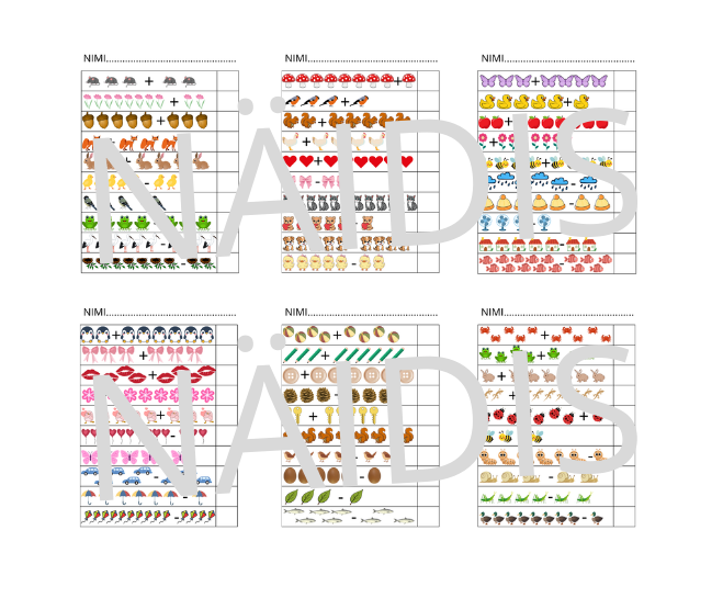 Liitmise ja lahutamise töölehed (6 lk) – lõbus matemaatika piltidega.