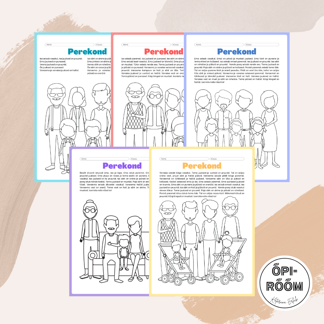 Õpilane loeb ja värvib loetu põhjal pilti. Töölehega korratakse pereliikmeid, värve, riideesemeid, asukohasõnu (ees, taga, kõrval, vasakul, paremal).