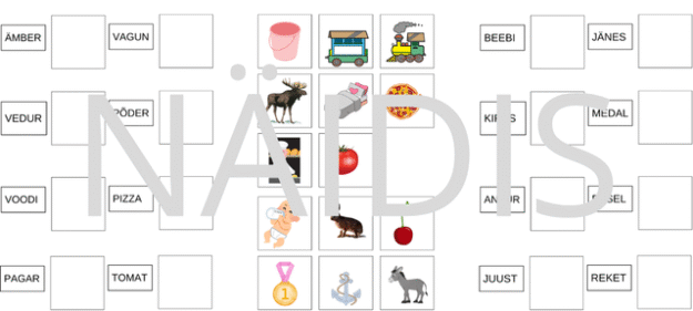 Nendel töölehtedel saavad lapsed lõigata pildid välja ja kleepida need õige sõna juurde. Harjutus toetab lugemisoskust, sõnavara arengut ja tähelepanu, pakkudes samal ajal käelist tegevust.