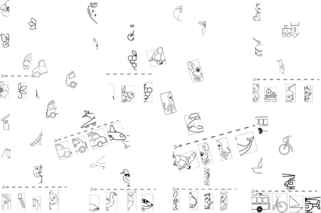 Vaata ülemisel osal olevaid pilte. Lõika mööda punktiirjoont välja alumised pildiosad. Leia igale pildile sobiv teine pool, kleebi õiged pooled kokku. Kontrolli, et pilt moodustaks terviku ja värvi.