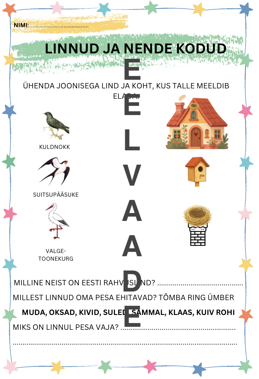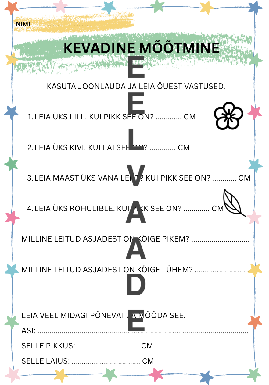 Töölehed (9 tk) toetamaks kevadel loodusõpetuse tunde 1. kui ka 2. klassis.