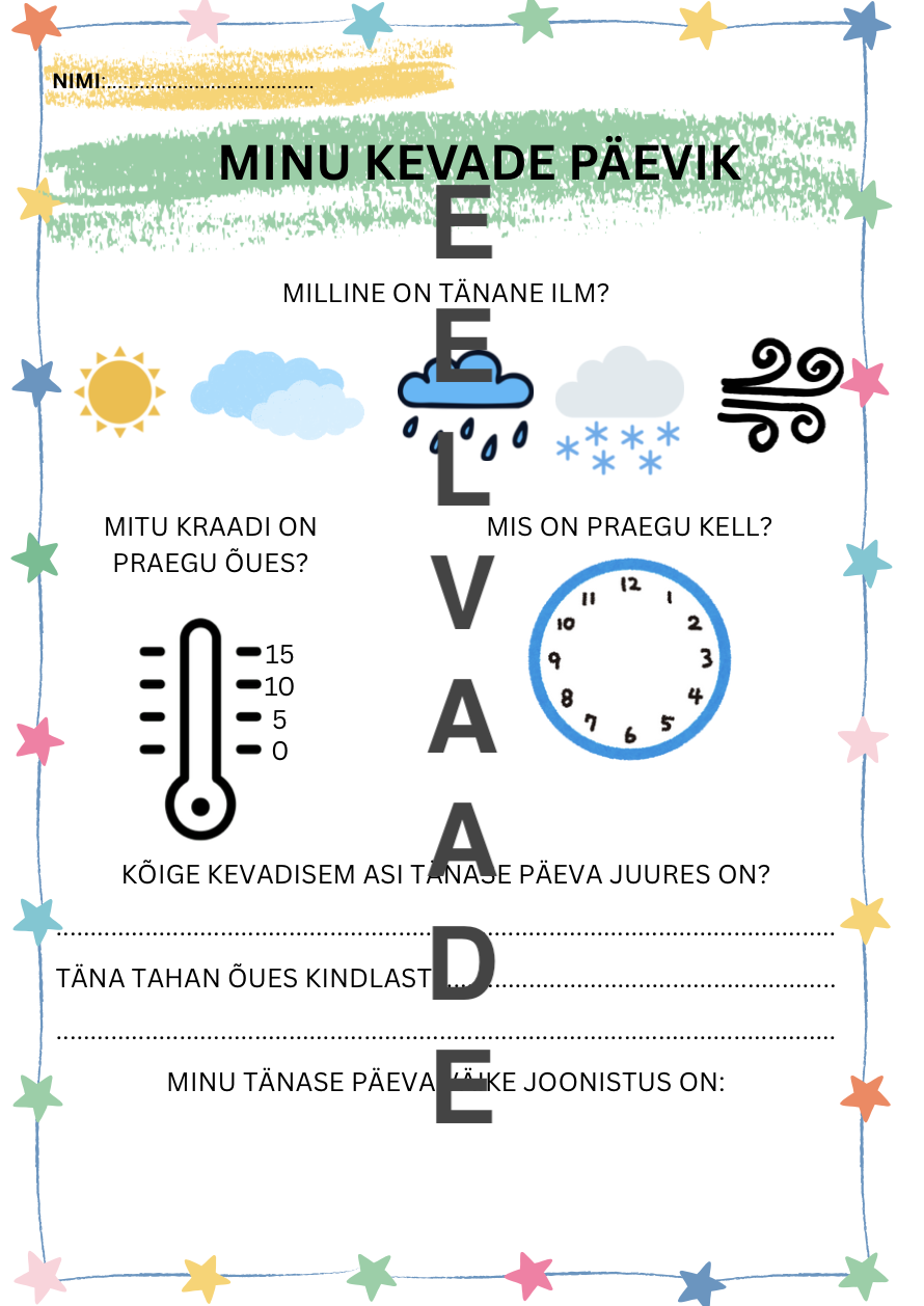 Töölehed on mõeldud eelkõige 1. klassi õpilasele, kus on põnevad õuetunnid, kui ka klassiruumis tehtavad töölehed. Töölehed ei ole seotud ühegi õpiku ega töövihikuga, vaid annavad mõnusat vaheldust ning võimalust uurida kevadet nii klassis kui ka õues. Mõned teemad: värvijaht looduses, ühe puu analüüs, kevade detektiivi bingo, ilma päevik.