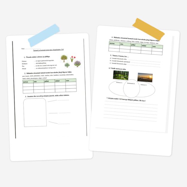 Loomad ja taimed erinevates maismaa elupaikades tööleht/teadmiste kontroll