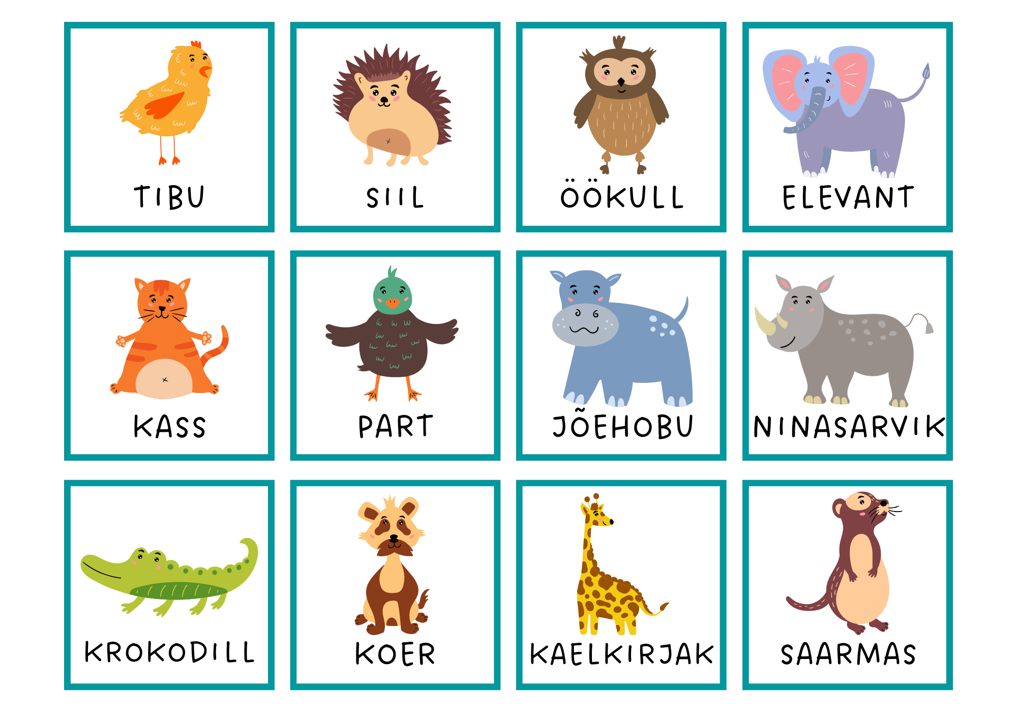 Ostja saab 4 lehte loomakaarte. Igal lehel on 12 looma. On nii Eestis elavaid loomi, kuid ka eksootilisi loomi. Iga värvilise pildi all on looma nimi eesti keeles.