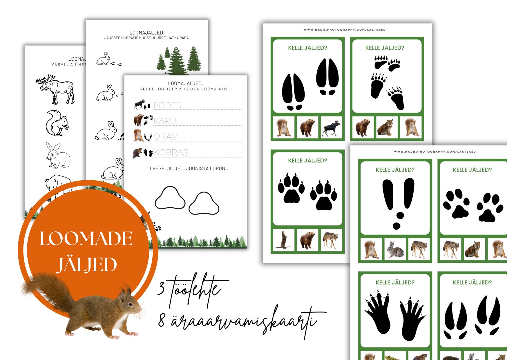LOOMADE JÄLJED. Töölehed ja äraaarvamiskaardid.
