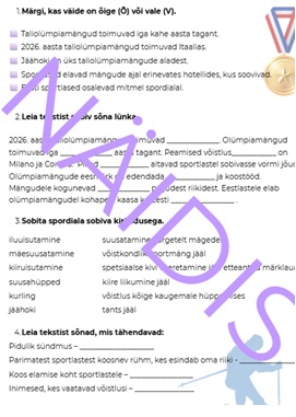 Lugemistekst 2026. aasta taliolümpiamängude kohta. Tekstiga on kaasas küsimused loetu kohta. Lisaks harjutused õige või vale väite leidmiseks, lünkharjutus, spordiala ja selle kirjelduse ühendamine, sõnavaratöö, i ja j õigekiri, kaashäälikuühendi leidmine, -ki ja -gi lõpu kasutamine.
