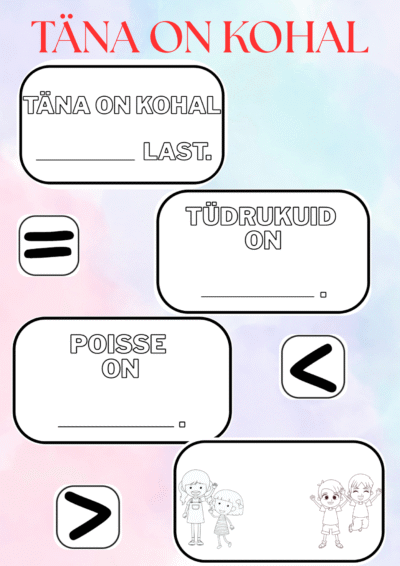 • TÄNA ON KOHAL (LASTE ARVU VÕRDLEMINE) 1.00 €