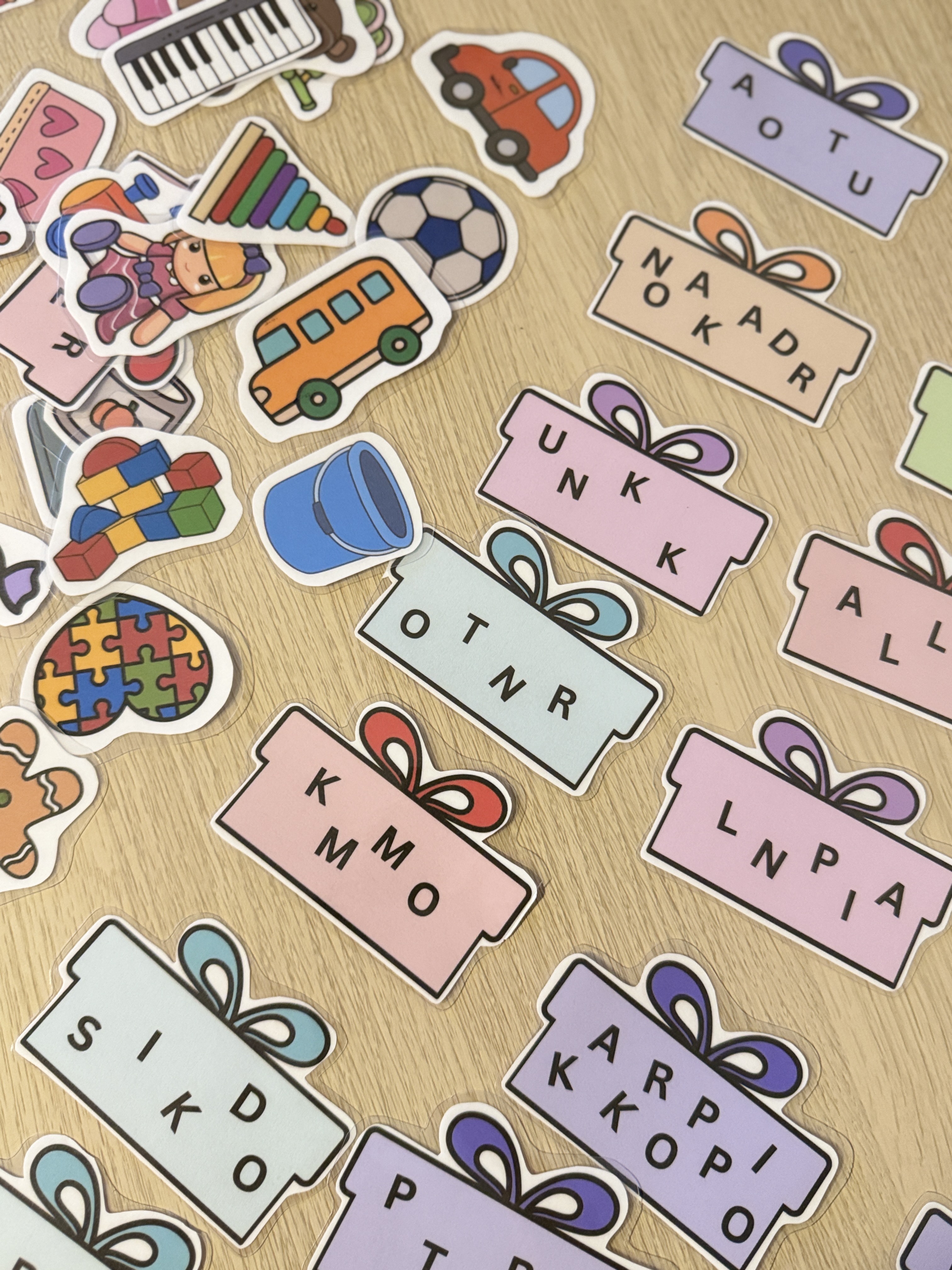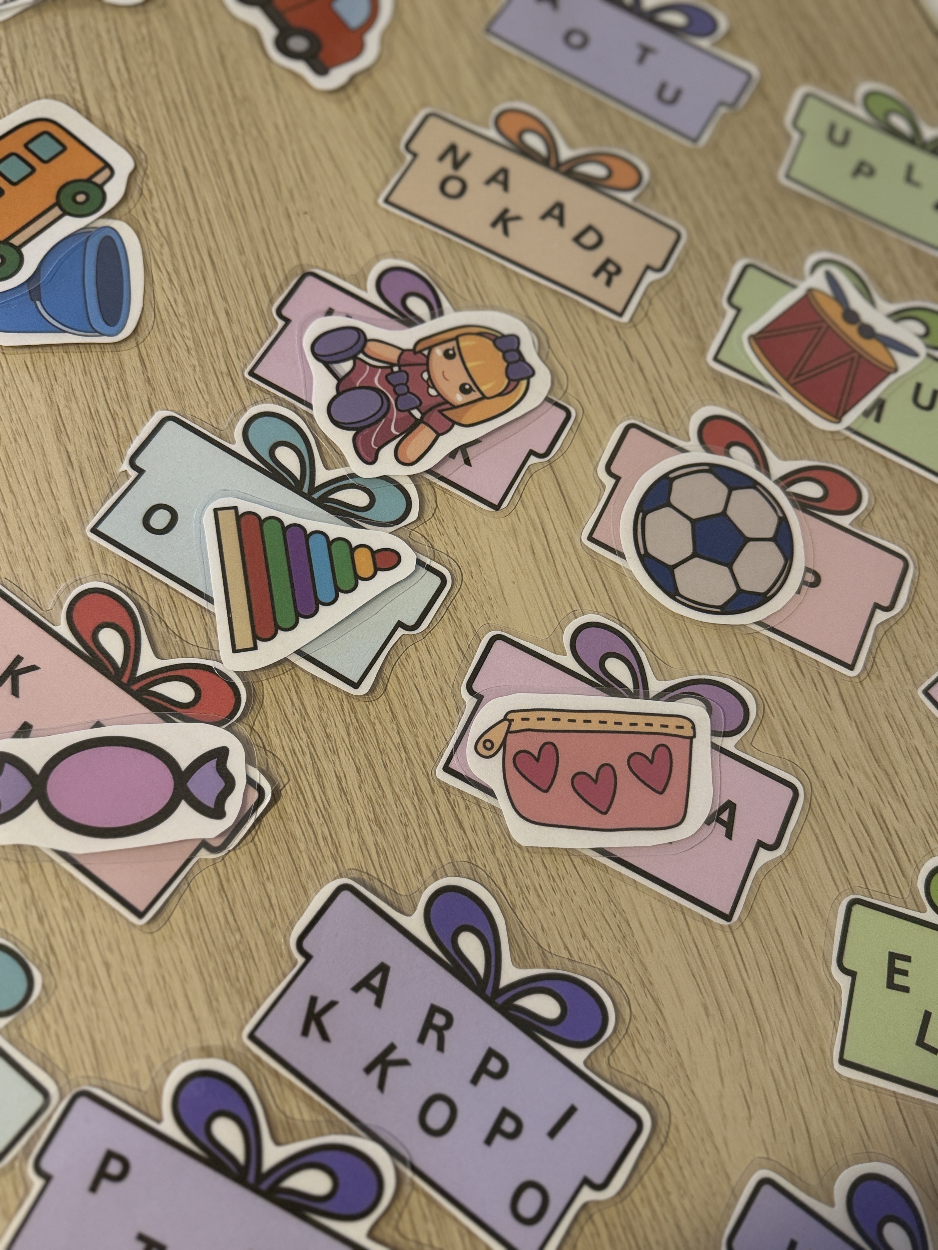 Muuda lugemine lõbusaks! Hariv ja mänguline õppemäng lastele, mis aitab arendada laste lugemisoskust. Mäng sobib väga hästi lugemise vastu huvi tekitamiseks. Lisaks toetab mäng lapse tähelepanu arengut ja aitab kaasa keskendumisele. Lapse ülesandeks on ühendada segi paisatud sõna kingipakil õige pildiga. Komplektis on 24 sõna+ pilti, keerukamate ja lihtsamate sõnadega, et õpetaja või mängujuhendaja saaks valida lapsele just sobivad. Mängu võib mängida grupis või individuaalselt, sobib hästi õppetegevuseks. Failis on ka täpsem juhend 3 erineva mänguvõimalusega.