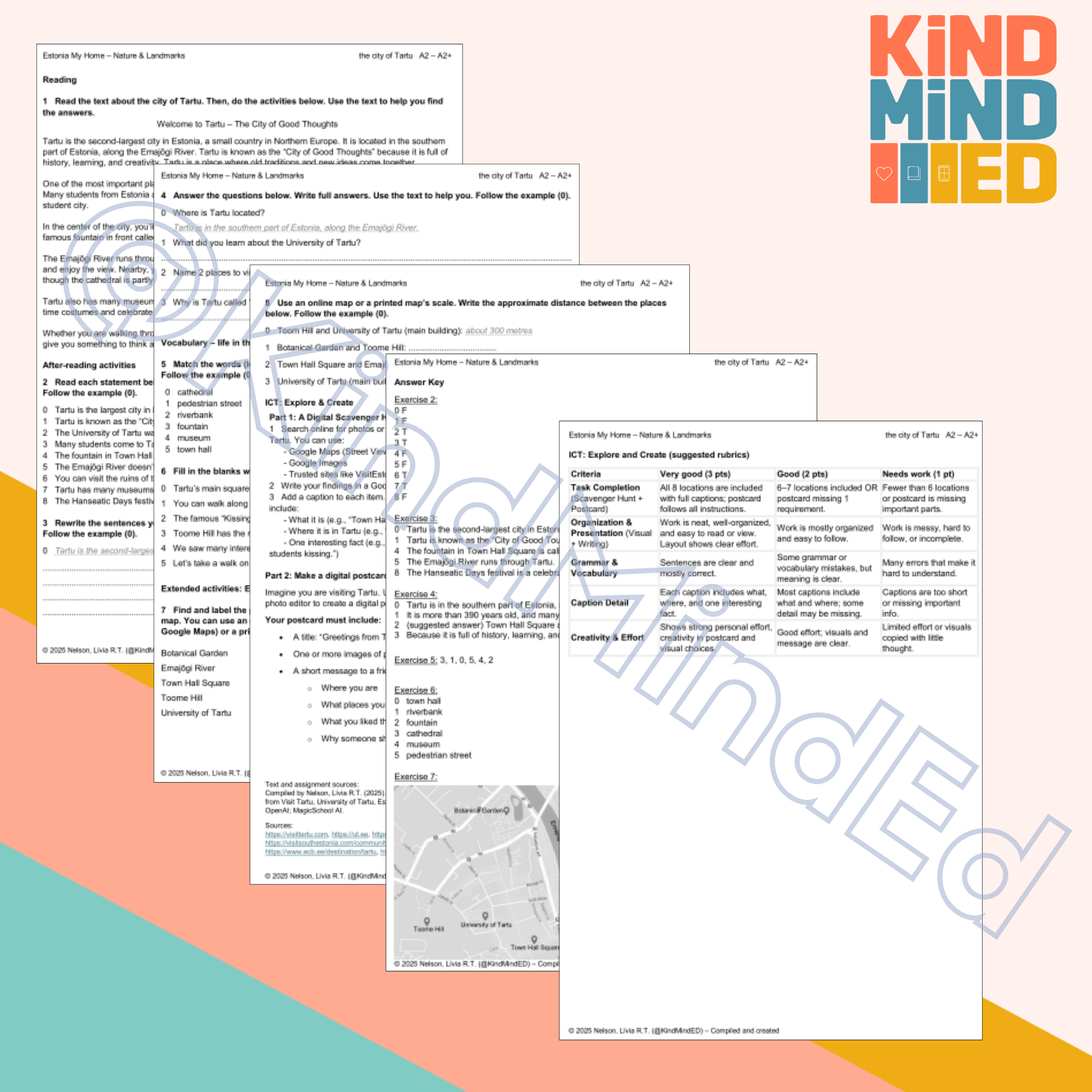 Arendada inglise keele lugemisoskust ja laiendada sõnavara teemal „Mu kodukoht Eesti“ Tartu linna näitel (CEFR A2–A2+).
