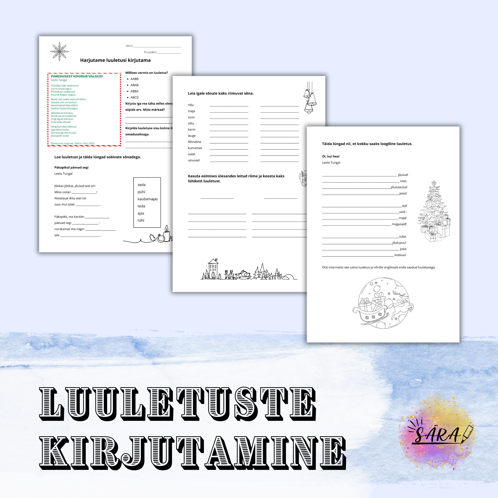 Erinevad jõuluteemalised ülesanded, et harjutada luuletuste kirjutamist.