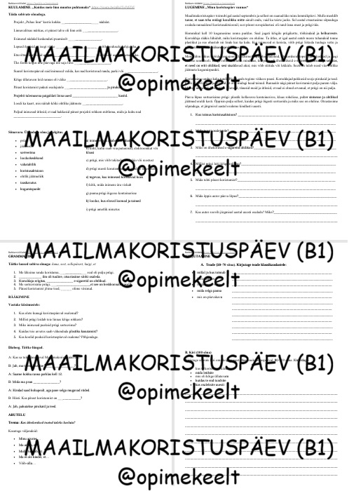 Töölehtede komplekt B1 keeletasemele. Sisaldab kuulamist, sõnavara, kirjutamisülesandeid, lugemist ja rääkimist. Sobilik nii kooli- kui ka kursusetunniks. 4lk