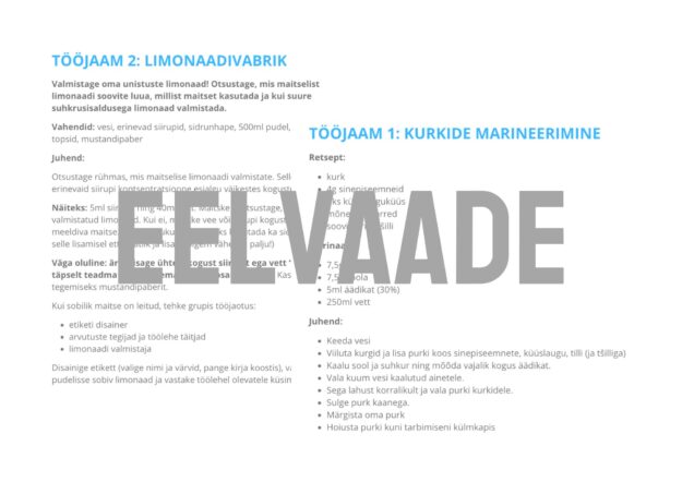 Juhendid on õpilastele lugemiseks ja selle järgi töötamiseks, tööleht täitmiseks.