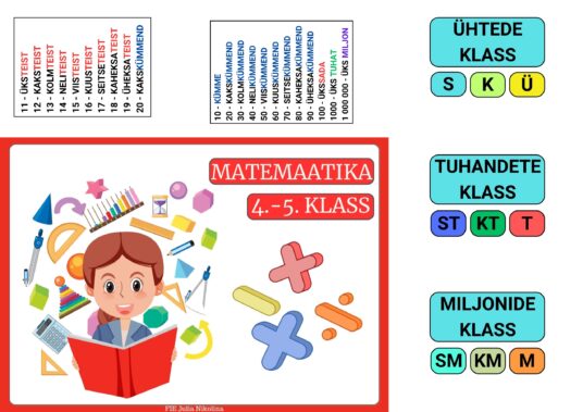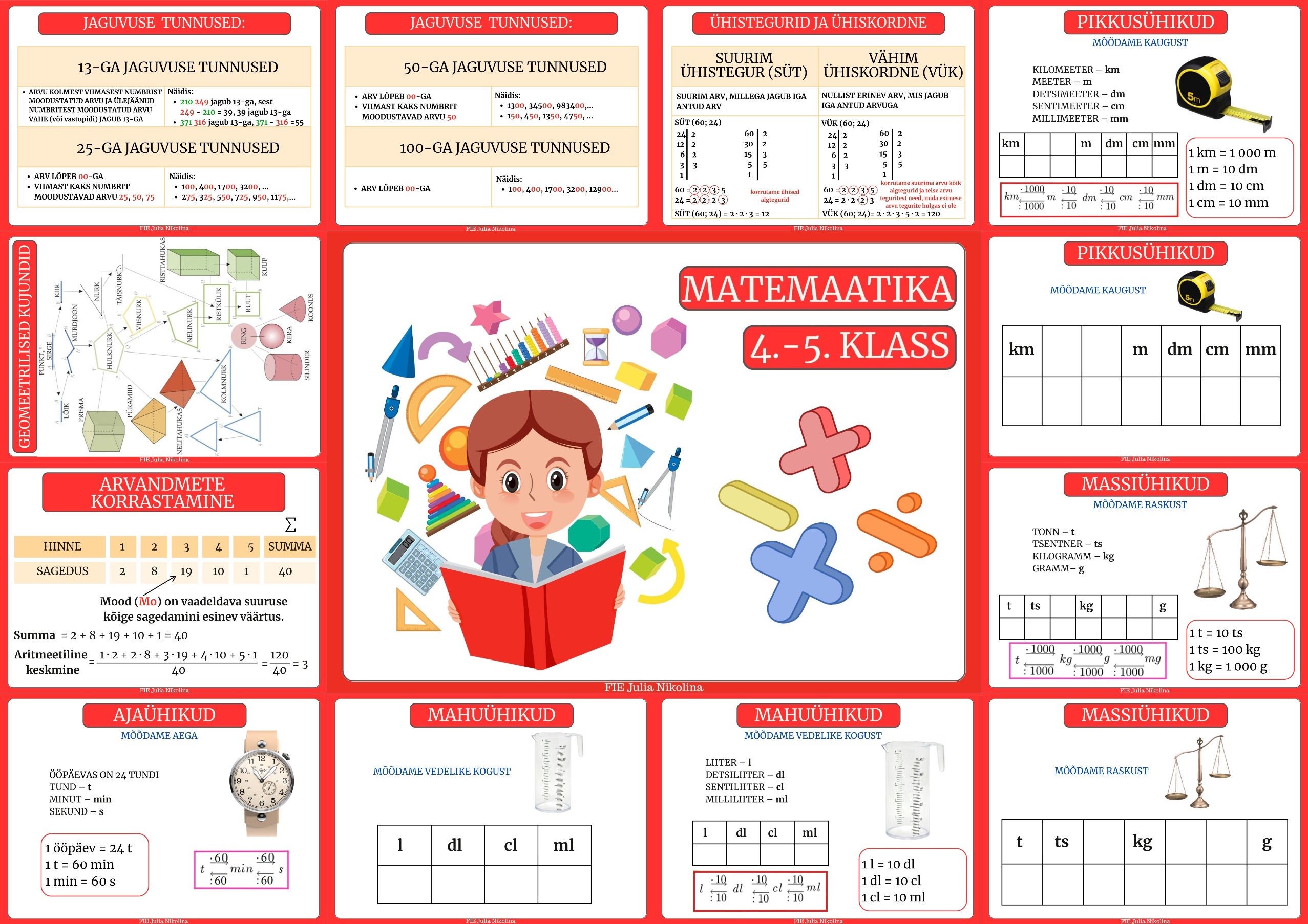 Matemaatika 4.-5. klassidele: reeglid ja näitlikud õppevahendid