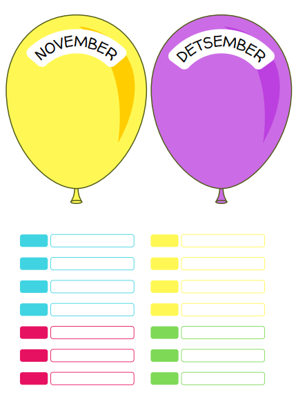 Kokku on komplektis 8 A4 lehekülge. Iga kalendrikuu kohta on üks õhupall (2 tk lehel). Viimasel lehel ka sildid iga lapse sünnipäeva märkimiseks (vajadusel seda lehte rohkem välja printida).